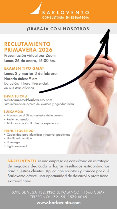 Barlovento, en conjunto con la Oficina de Career Services del ITAM, te invita a su sesión de reclutamiento presencial dirigida a todos los estudiantes de último semestre, recién egresados y exalumnos (de entre 2 a 3 años de experiencia) de todas las licenciaturas e ingenierías.