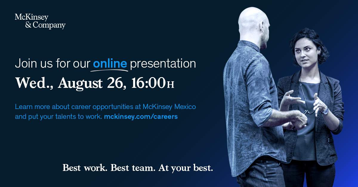 McKinsey & Company en conjunto con la Oficina de Career Services del ITAM te invita a su sesión de reclutamiento remota, dirigida a alumnos a partir de 4º semestre y exalumnos (con 2 años de haber egresado) de todas las licenciaturas e ingenierías.