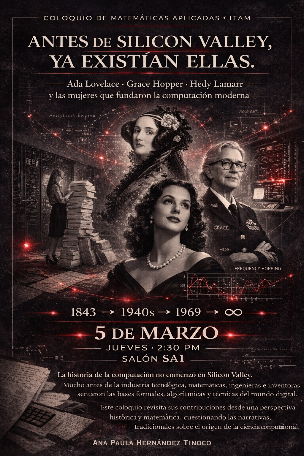 La historia de la computación no comenzó en Silicon Valley. Mucho antes de la industria tecnológica, matemáticas, ingenieras e inventoras sentaron las bases formales, algorítmicas y técnicas del mundo digital. Este coloquio revisita sus contribuciones desde una perspectiva histórica y matemática, cuestionando las narrativas tradicionales sobre el origen de la ciencia computacional.