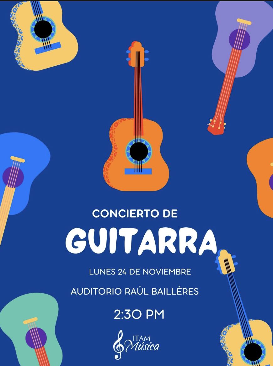 Culturales El 24 de noviembre acompañanos al concierto de Guitarra organizado por ITAMusica que se llevará acabo en el auditorio Organiza: ITAM MúsicaUbicación: Auditorio Raúl Baillères, Río HondoCorreo electrónico: robertoocc11@gmail.comExtensión o teléfono: 96 1176 6973