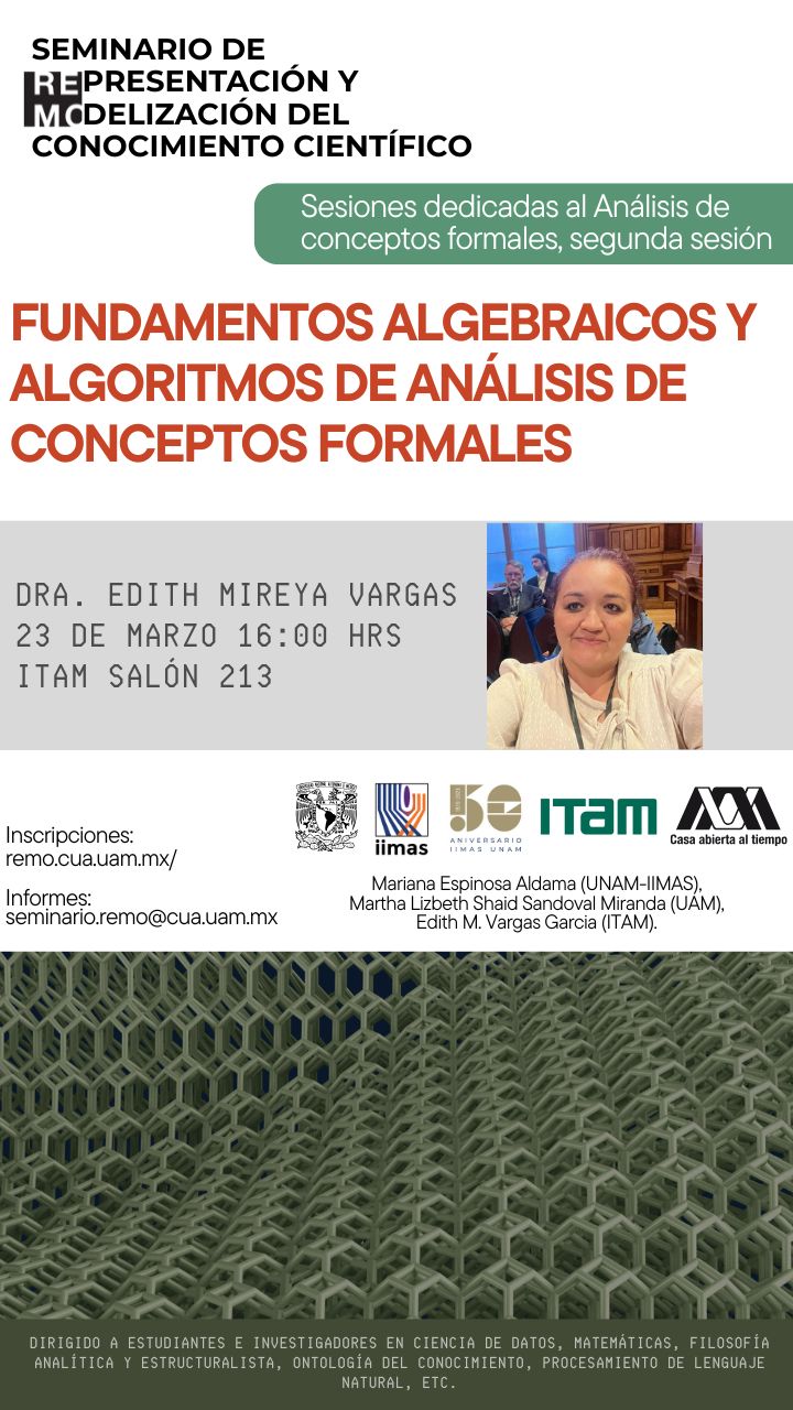Segunda sesión impartida por la DRA. EDITH MIREYA VARGAS. Dirígido a estudiantes e investigadores en Ciencias de Datos, Matemáticas, Filosofía Analítica y Estructuralista, Ontología del conocimiento, etc.