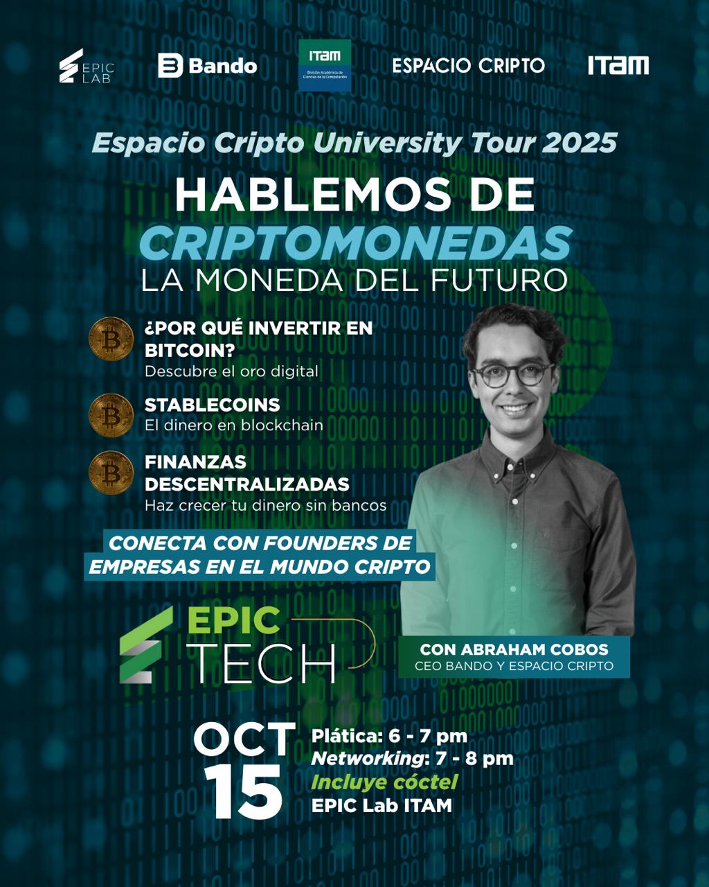 La conversación estará a cargo de Abraham Cobos, CEO de Bando y Espacio Cripto.