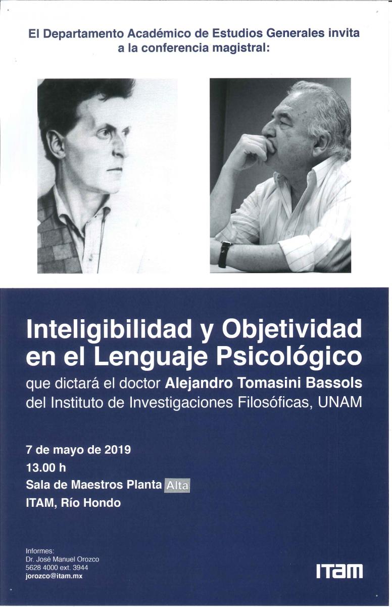 Que dictará el Dr. Alejandro Tomasini Bassols del Instituto de Investigaciones Filosóficas de la UNAM, el día martes 7 de mayo a las 13:00 h. en la Sala de Maestros, planta alta, plantel Río Hondo.