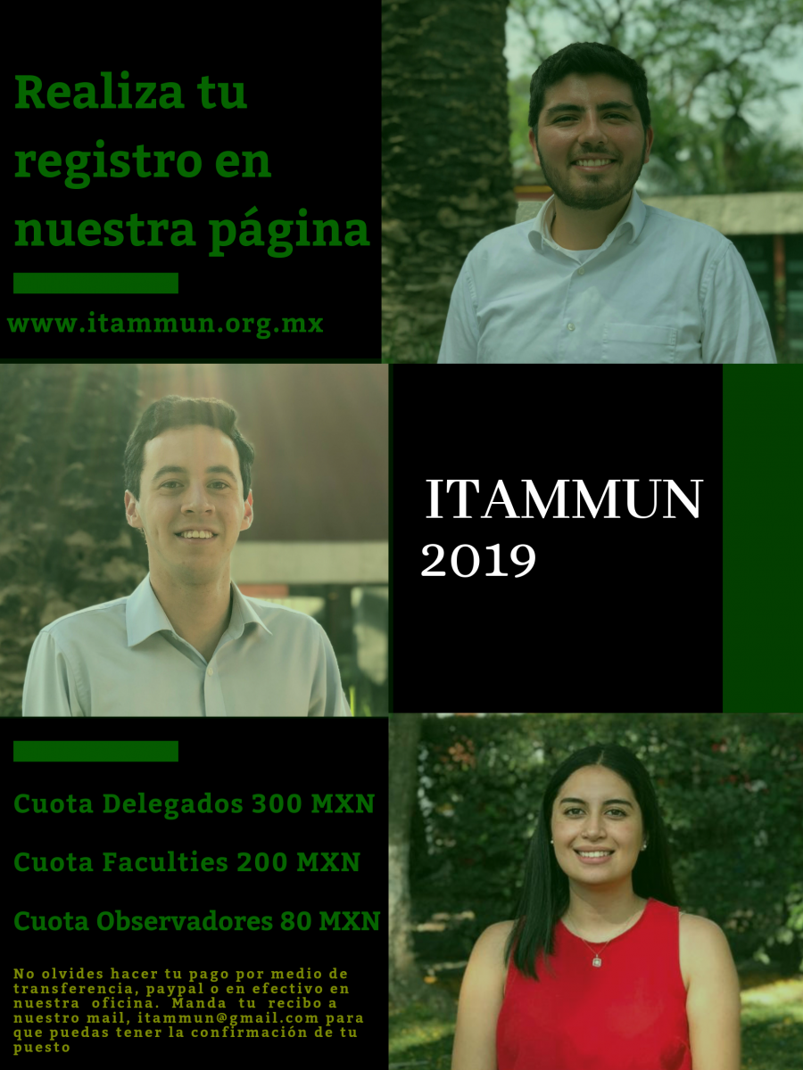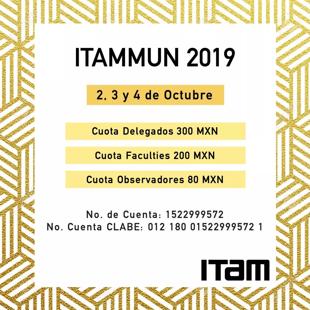 Están invitados a la vigésima segunda edición del Modelo de Naciones Unidas llevado a cabo por el Instituto Tecnológico Autónomo de México, ITAMMUN 2019 que se realizará los días 2, 3 y 4 de octubre de 2019, en el campus Río Hondo de la universidad, ubicado en Río Hondo #1, Colonia Progreso Tizapán, Ciudad de México.