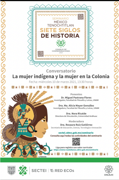 Conversatorio de expertos historiadores sobre el papel de la mujer indígena y la mujer en la colonia, enmarcado en el Seminario México Tenochtitlan, Siete Siglos de Historia.