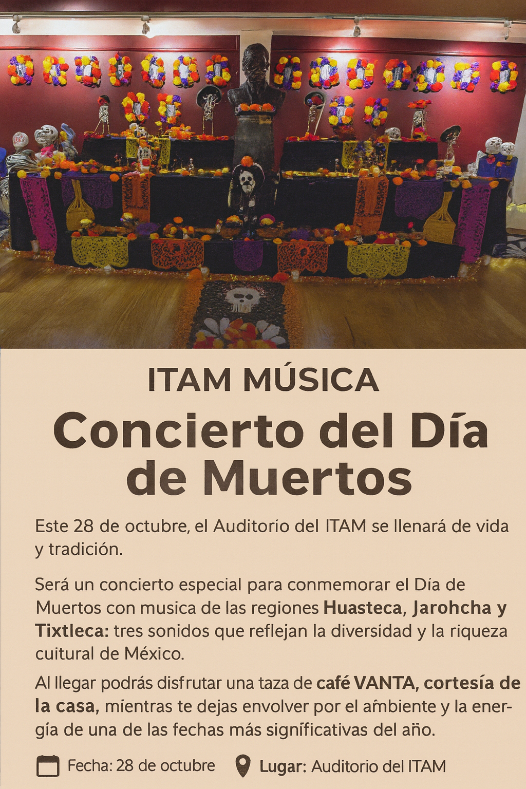 Este 28 de octubre el Auditorio del ITAM se llena de vida y tradición.