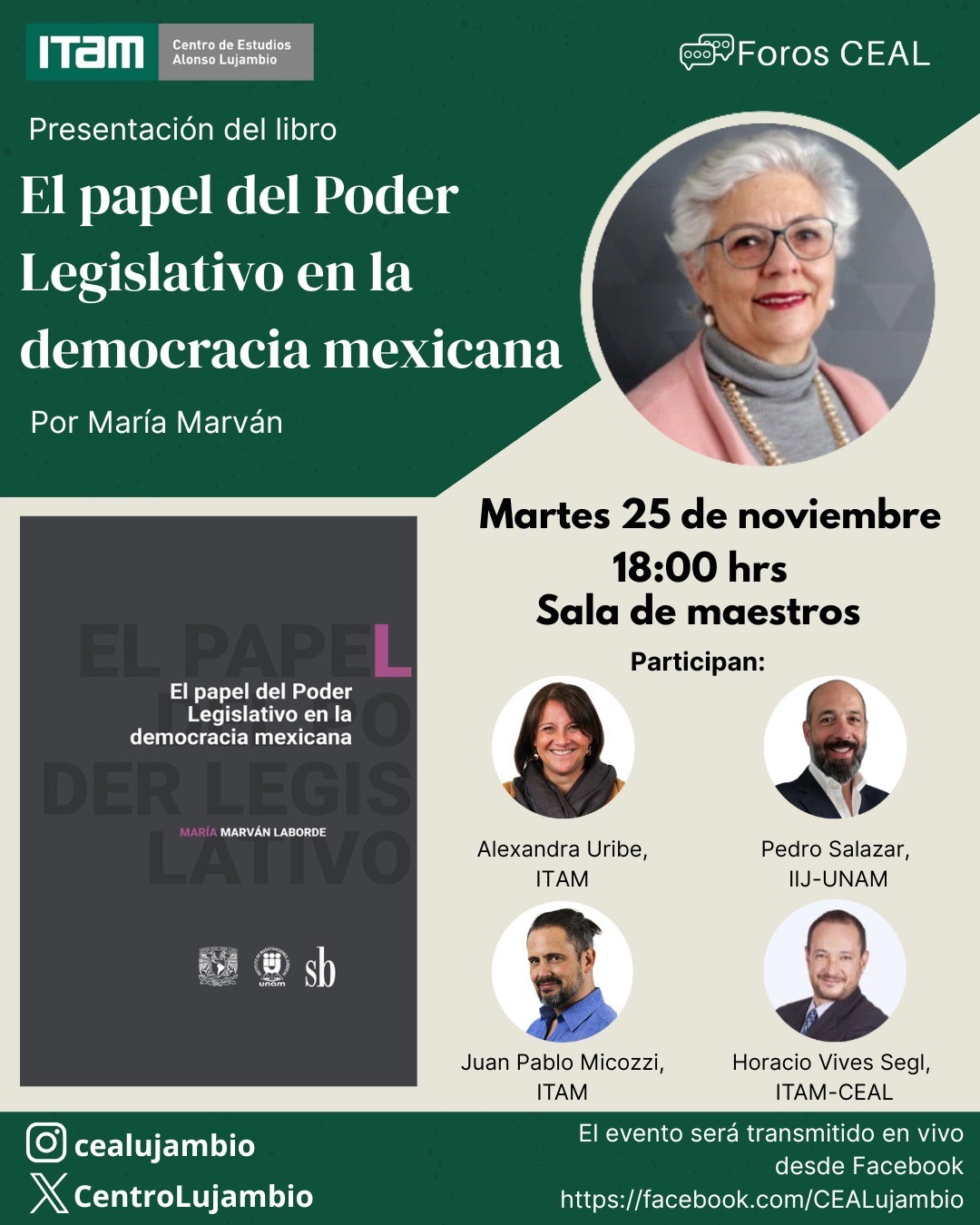 Te invitamos a la presentación del libro "El papel del Poder Legislativo en la democracia mexicana" de María Marván Laborde.