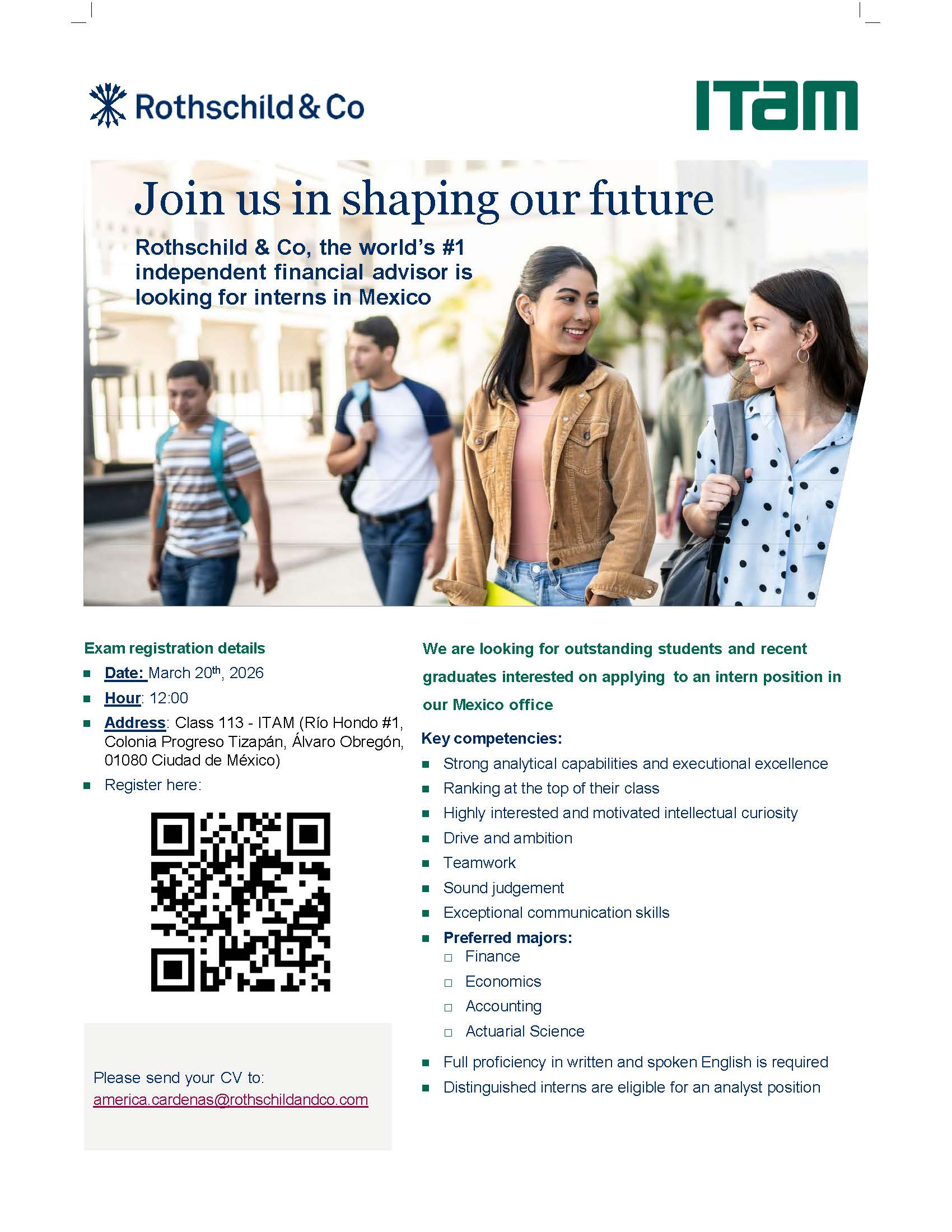 La División Académica de Negocios en conjunto con Rothschild & Co te invita al proceso de reclutamiento y aplicación de examen presencial, dirigido a los alumnos de los dos últimos semestres de las siguientes carreras.