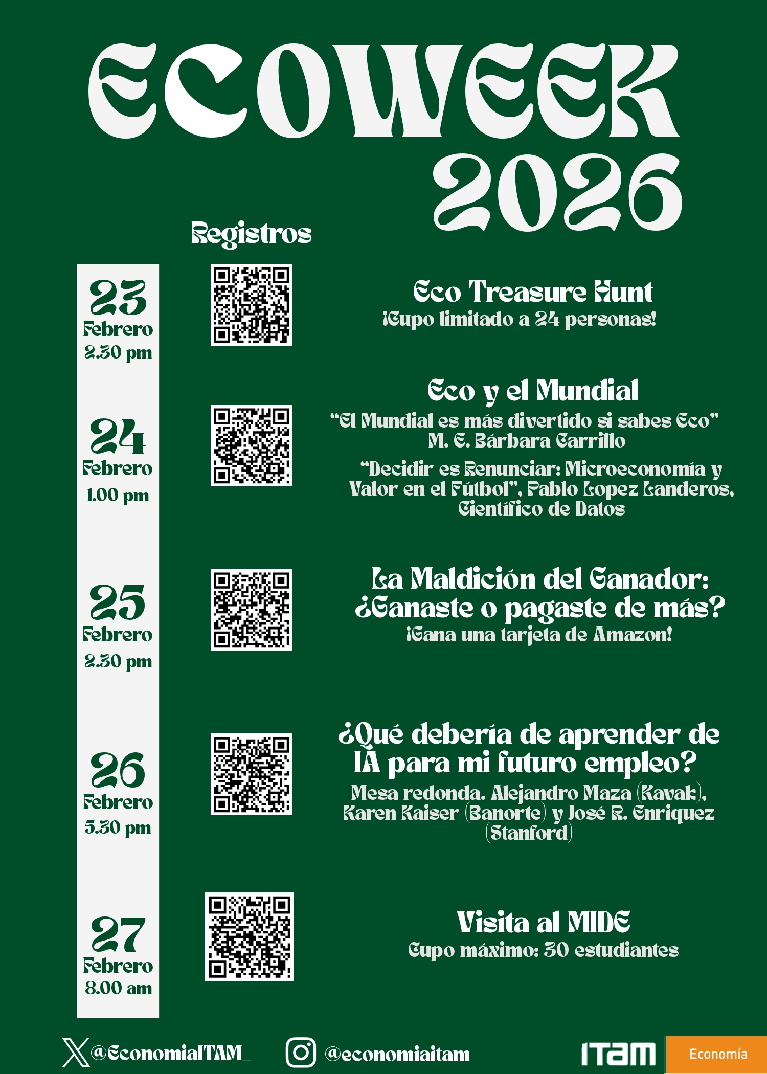 Ven y participa en los diferentes eventos que tendremos en la semana de Economía - EcoWeek 2026