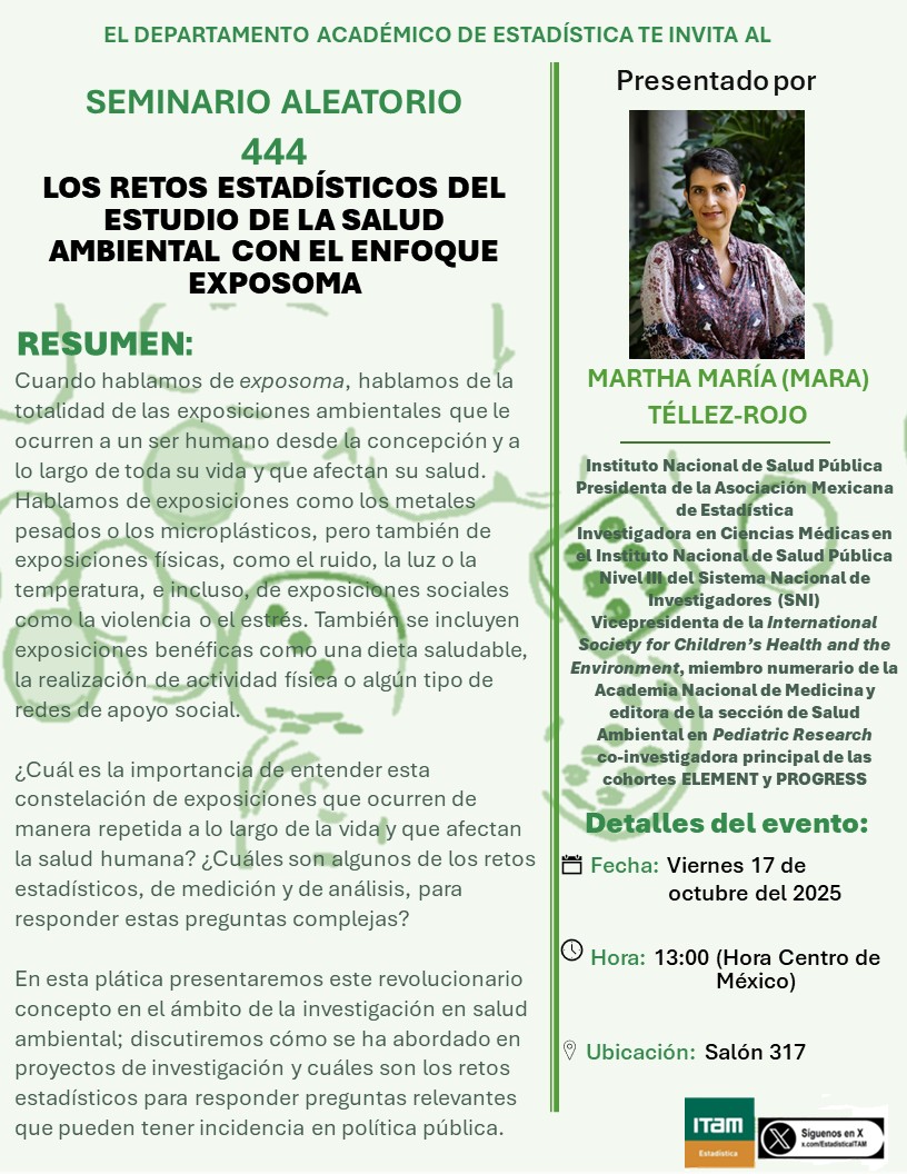 En esta plática presentaremos este revolucionario concepto en el ámbito de la investigación en salud ambiental; discutiremos cómo se ha abordado en proyectos de investigación y cuáles son los retos estadísticos para responder preguntas relevantes que pueden tener incidencia en política pública.