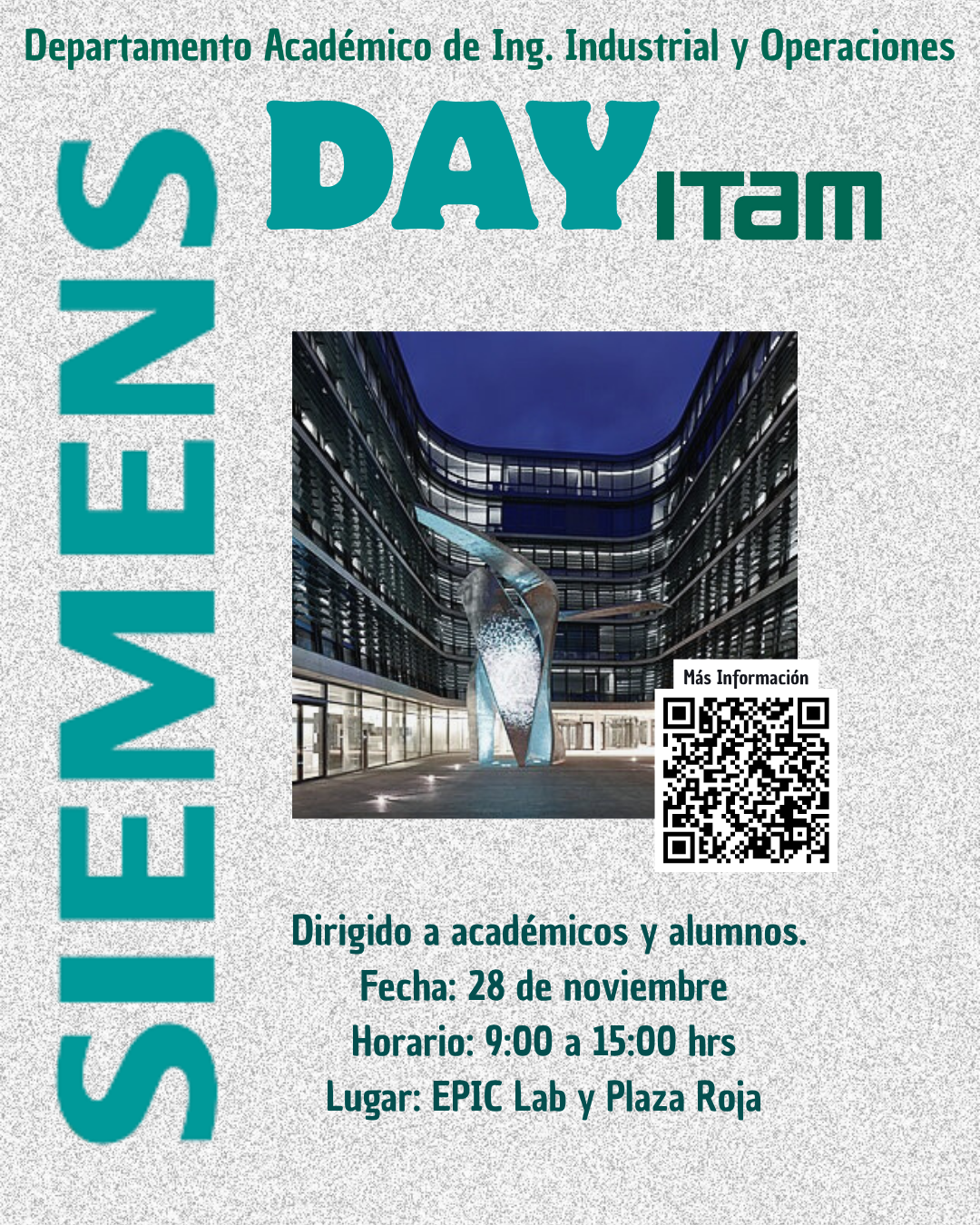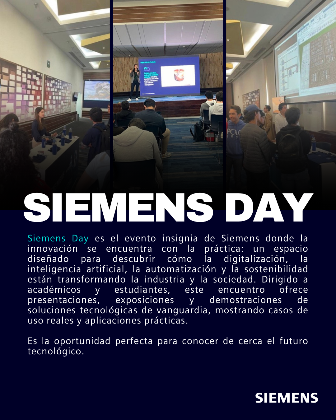 Los invitamos al evento Siemens Day que se llevará a cabo en la Plaza Roja y Epic Lab este viernes 28 de noviembre, en horario de 9:00 a 15:00 horas. Es una excelente oportunidad para conocer de cerca las tendencias tecnológicas que están transformando la industria y la educación.