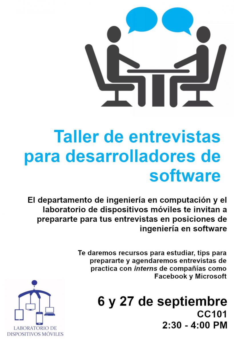La Dirección de programa de Ingeniería en Computación y el Laboratorio de Dispositivos Móviles te invitan a prepararte para tus entrevistas en posiciones de Ingeniería en software