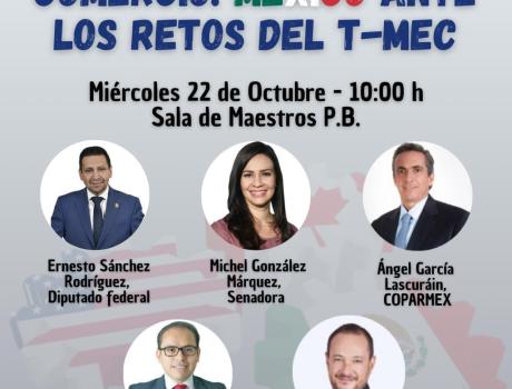 Durante la plática se trataran los retos que enfrenta México sobre comercio y sus tratados. La idea principal que expondran los ponentes sera sobre el tratado del T-MEC.