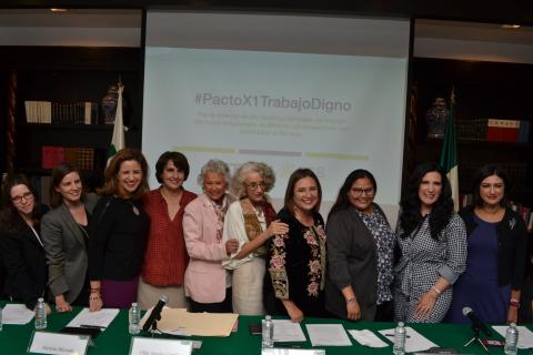 Las candidatas al Senado Patricia Mercado de Movimiento Ciudadano, Kenia López del PAN, Xóchitl Gálvez del PRD, Lorena Cruz del PRI, Olga Sánchez Cordero y Citlalli Hernández de Morena, se comprometieron a ratificar el convenio 189 de la...